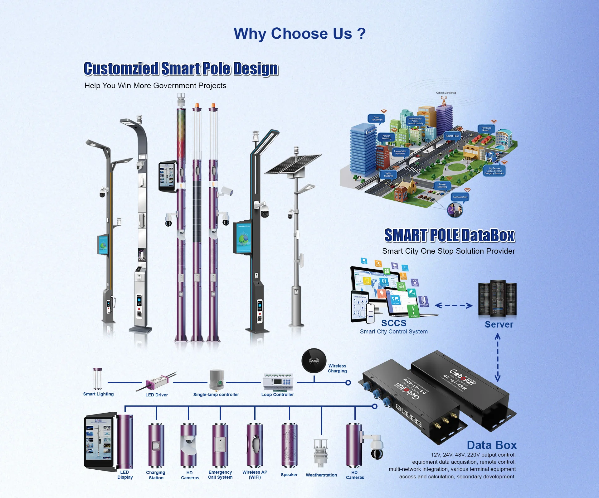 Gebosun® Lighting smart pole control, management cloud platform has a high capacity feature of cloud services, supports massive node expansion, smart cities connect and achieves full life-span supervision of city-level lighting and other devices, including network access, debugging, and operation