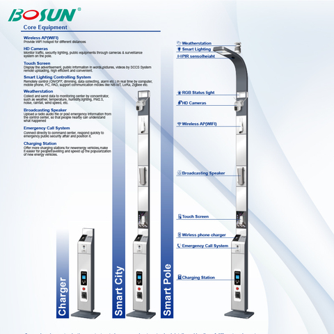 Gebosun Smart Pole Straßen beleuchtung Mobiltelefon Drahtloses Laden Kunden spezifischer Lichtmast Kalte und warme Lampe Optionaler Smart Pole